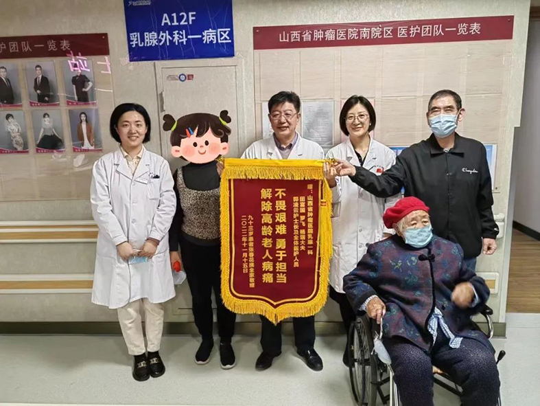 12月14日,山西省医院协会理事单位——山西省肿瘤医院对外介绍,该院乳腺一病区成功为一位91岁的老人施行乳腺癌切除手术,获得患者及家属的感谢。