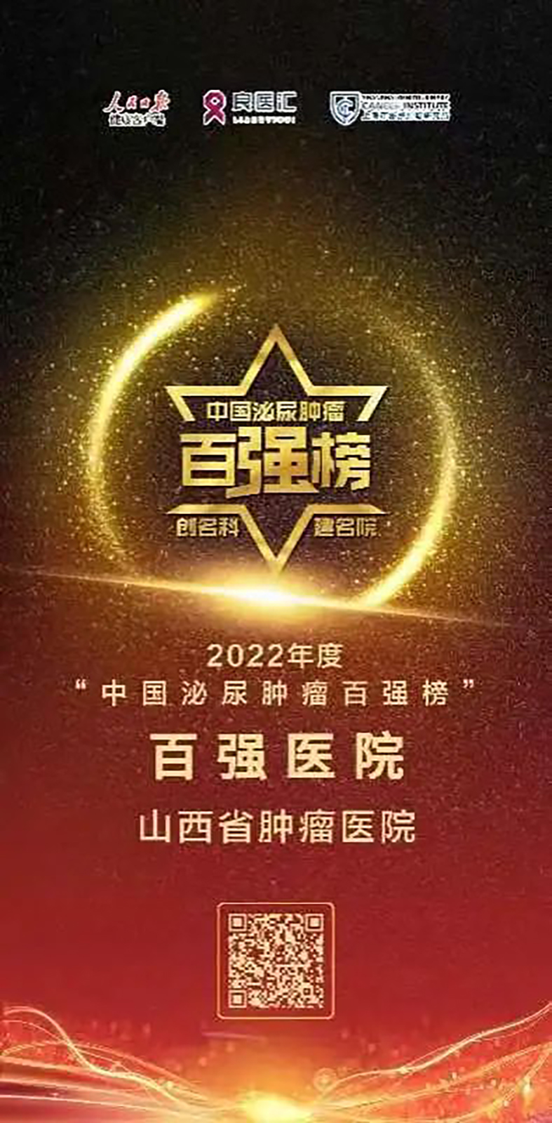 由上海市泌尿肿瘤研究所、良医汇共同主办,人民日报健康客户端全程推广及媒体支持的2022年度“中国泌尿肿瘤百强榜”于11月26日在第十二届上海泌尿肿瘤国际论坛暨中国临床肿瘤学会前列腺癌专家委员会高峰论坛上正式发布,山西省医院协会理事单位——中国医学科学院肿瘤医院山西医院(山西省肿瘤医院)再度获得2022年度“中国泌尿肿瘤百强榜”百强医院称号及MDT卓越中心称号,也是山西省唯一上榜单位。邢念增总院长获评“卓越导师”、陈惠庆主任医师获评“卓越导师”、韩雪冰主任医师获评“卓越医师”、刘洪宇主治医师获评“卓学医师”。