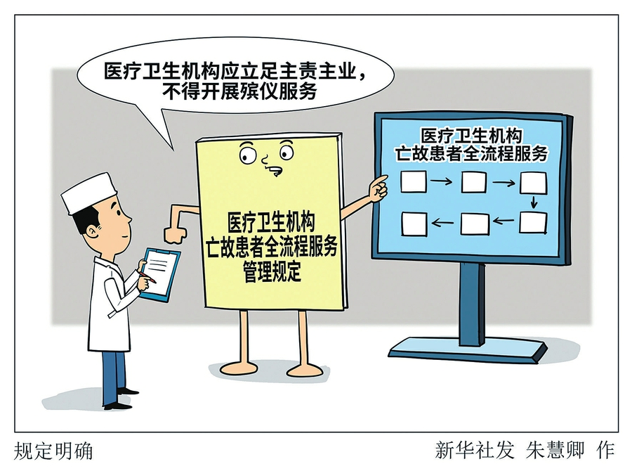 根据国家卫生健康委等6部门12日公布的《医疗卫生机构亡故患者全流程服务管理规定》,医疗卫生机构应立足主责主业,不得开展殡仪服务。