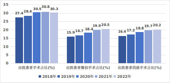 ▲图2 2018-2022年三级公立医院出院患者手术开展情况