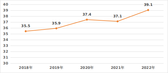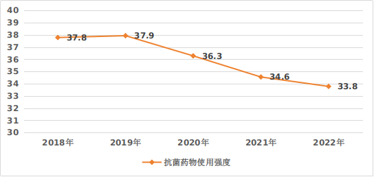 ▲图3 2018-2022年三级公立医院抗菌药物使用强度情况