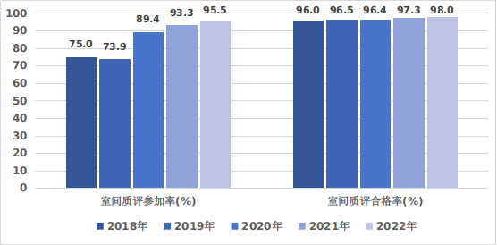 ▲图5 2018-2022年三级公立医院室间质评项目参加率和合格率情况