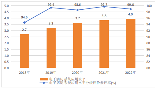 ▲图6 2018-2022年三级公立医院电子病历系统应用水平分级评价情况