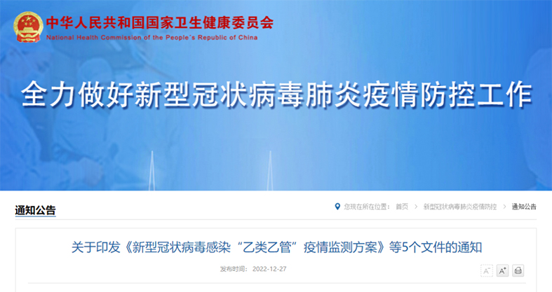 关于印发《新型冠状病毒感染“乙类乙管”疫情监测方案》等5个文件的通知