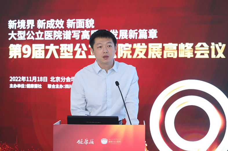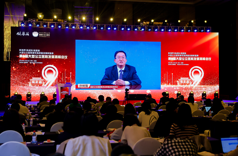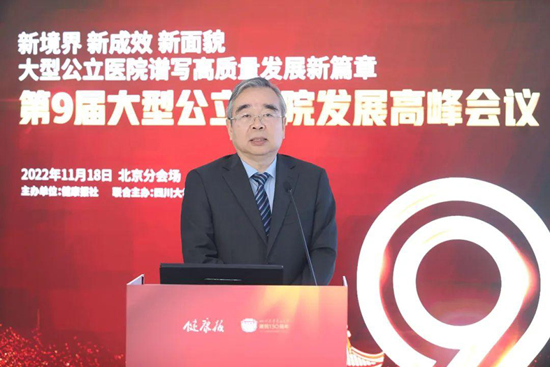 党的二十大开启新征程,为建设健康中国指明前进道路。在新的时代背景下,在新的战略征程上,11月18日,由健康报社、四川大学华西医院联合主办的第九届大型公立医院发展高峰会议,在四川省成都市以线上线下相结合的方式召开。会议以“新境界、新成效、新面貌——大型公立医院谱写高质量发展新篇章”为主题。来自全国各地的卫生健康行政部门管理者、大型公立医院管理者、专家学者、业界精英通过深入交流,为新时代公立医院高质量发展赋能,为提升人民健康福祉集智,为齐心协力当好健康中国先行者吹响号角。