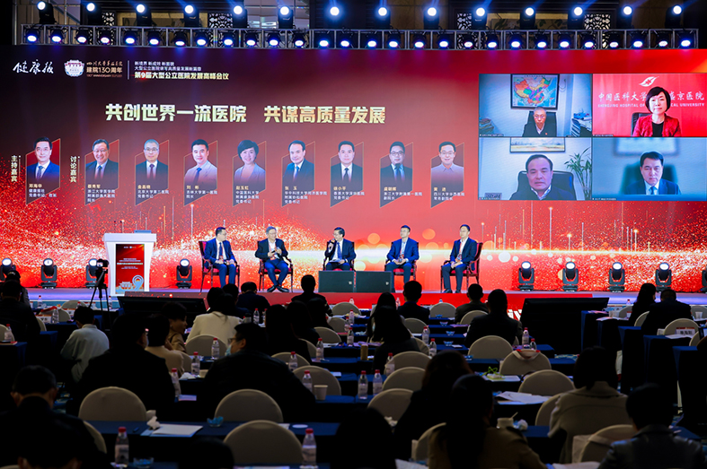 四川大学华西医院党委书记李正赤主持开幕式,健康报社总编辑孙伟在北京分会场主持主旨演讲环节。浙江大学医学院附属邵逸夫医院院长蔡秀军、北京大学第三医院党委书记金昌晓、吉林大学第一医院院长刘彬、中国医科大学附属盛京医院党委书记赵玉虹、华中科技大学同济医学院附属协和医院党委书记张玉、香港大学深圳医院党委书记徐小平、浙江大学医学院附属第一医院副院长虞朝辉、四川大学华西医院常务副院长黄进等,围绕“共创世界一流医院、共谋高质量发展”的话题进行圆桌讨论。
