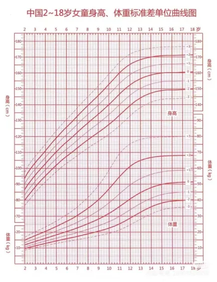 2.关注生长速度:婴幼儿期(3岁以下)生长速率<7cm/年,儿童期(3岁-青春期)生长速率<5cm/年,青春期生长速率<5.5—6.5cm/年,可考虑为儿童生长迟缓!