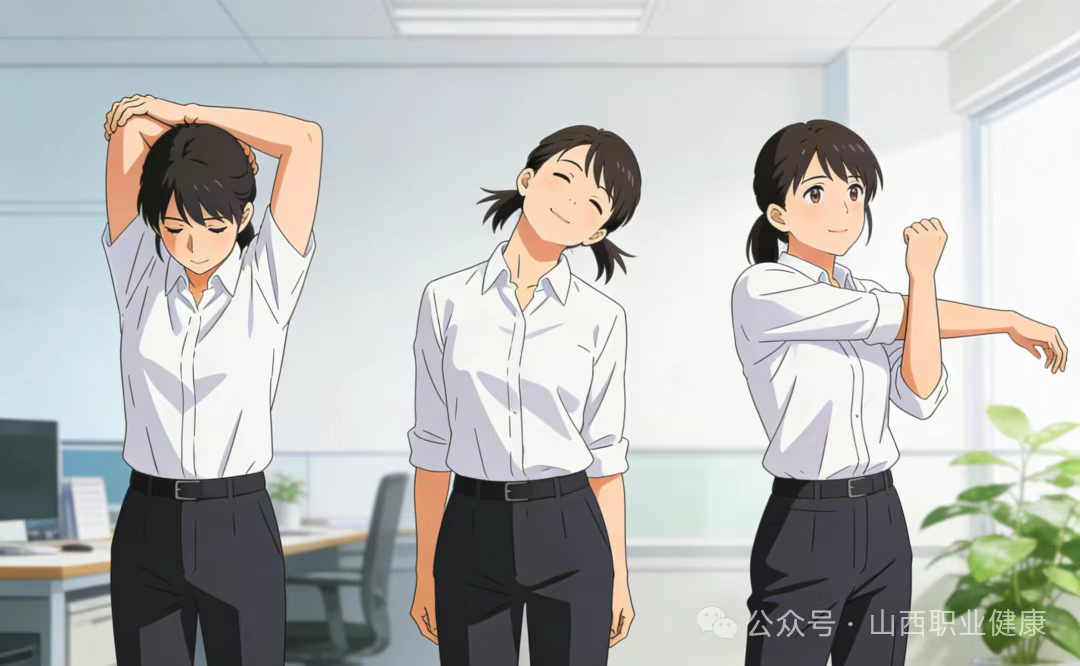 定时颈肩放松:每工作 30 分钟,起身做一组颈肩放松动作。比如双手抱头后顶,脖子向前对抗发力 5 秒后放松,重复 10 次;缓慢左右转头,每个方向停留 3 秒,动作幅度以自己感到舒适为宜;还可以双手交叉举过头顶,向两侧拉伸,缓解颈肩肌肉紧张。