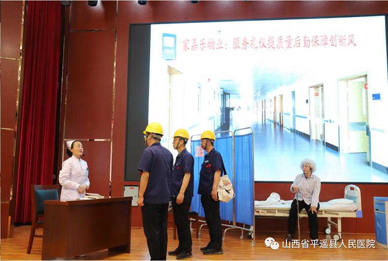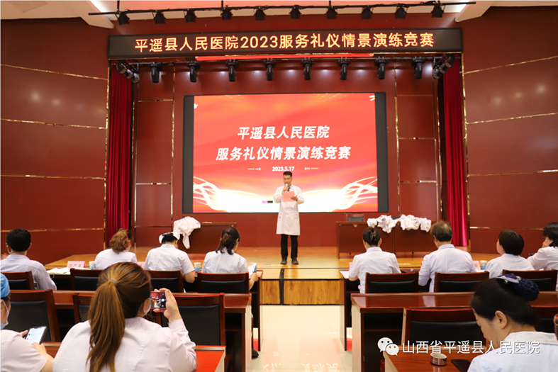 为深入“推进清廉医院建设,改善医疗服务百日行”活动,全面提升全体员工服务素养,将服务礼仪培训成果进一步落实在日常工作中,5月17日,山西省医院协会理事单位——平遥县人民医院举办服务礼仪情景演练竞赛活动。该院门诊、急诊、医技科室、各窗口科室、后勤物业外包公司等共14支队伍参赛。副院长刘秀玲、院办主任范思康、部分科室主任共同担任大赛评委。