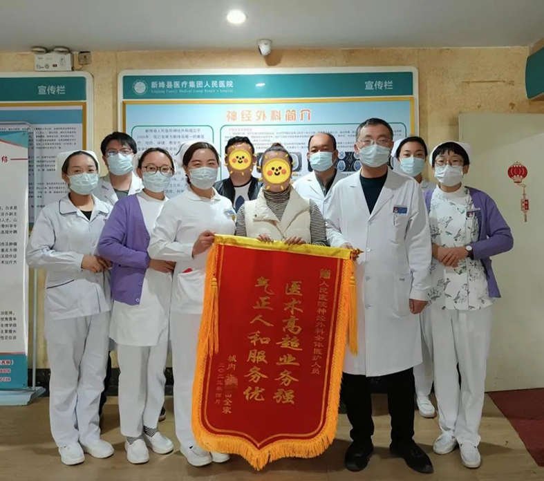 术后,在ICU、神经外科护理团队的精心护理中,患者肌力及语言功能很快恢复,生活质量得到明显改善。2023年4月24 日,患者康复出院。出院后,家属特意送来一面锦旗表示感谢。