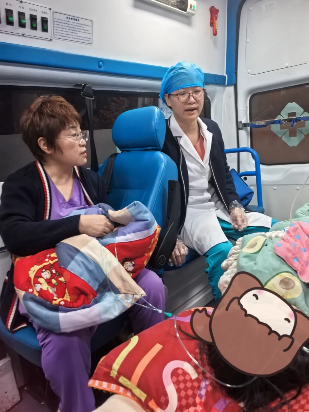 19:12,医护人员抵达患者家中,眼前的场景令人揪心:孕妇宫缩强烈,面露痛苦且不停屏气用力,看似即将分娩。医护团队的专业检查却发现更危急的事情——经询问病史、听胎心、**检查与生命体征监测,发现孕妇为瘢痕子宫、34+6周早产,胎心仅80多次/分,存在严重胎儿窘迫;且下午5点起宫缩已规律,属进展迅猛的急产,此时宫口已开全、胎头下降,根本无法转运,只能就地分娩。