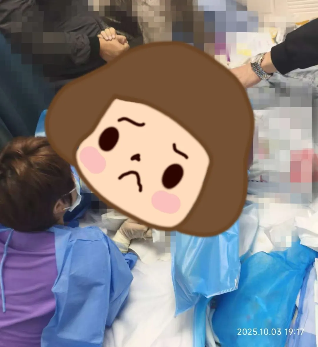 19:20,宝宝娩出!此刻,任秀珍的脸上、脖子上已沾满血与羊水,但她无暇顾及,本能地立刻为新生儿吸痰、保暖、刺激,直到那声象征生命的啼哭响起。紧接着,医护人员迅速为宝宝断脐、保暖,守护这来之不易的生命。