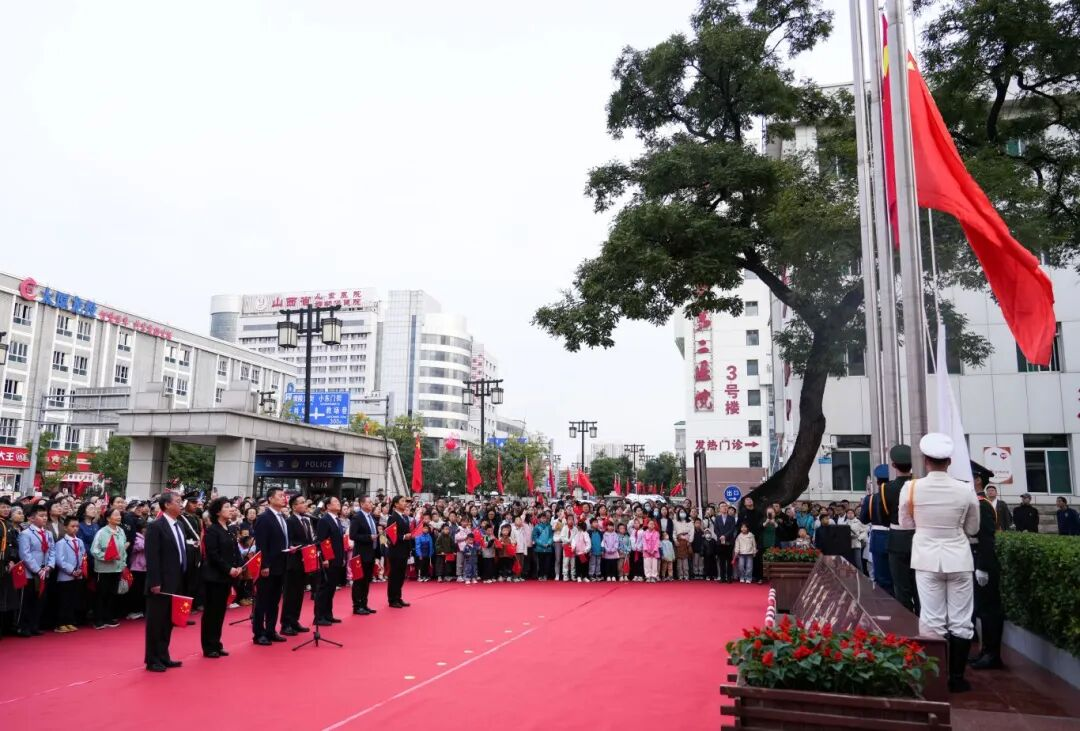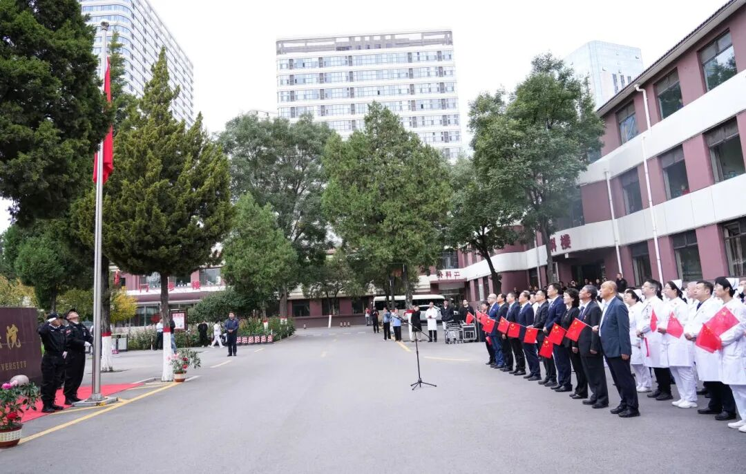 在中华人民共和国成立76周年的重要时刻,山医大二院通过多院区联动举行国庆升旗仪式暨爱国爱院主题教育活动,不仅赓续了百年二院的光荣传统,也成为推动多院区深度融合、促进医院文化共建的重要实践。活动由院本部统一协调,各院区积极响应、密切配合。院领导班子全体成员全程参与三个院区的升旗仪式,与一线干部职工和群众共同见证五星红旗的升起;一同连线远在非洲多哥卡拉地区的山医大二院援非队员,向他们致以节日的慰问,送上暖心的祝福,充分展现了新一届领导班子团结进取、奋发有为的精神风貌。