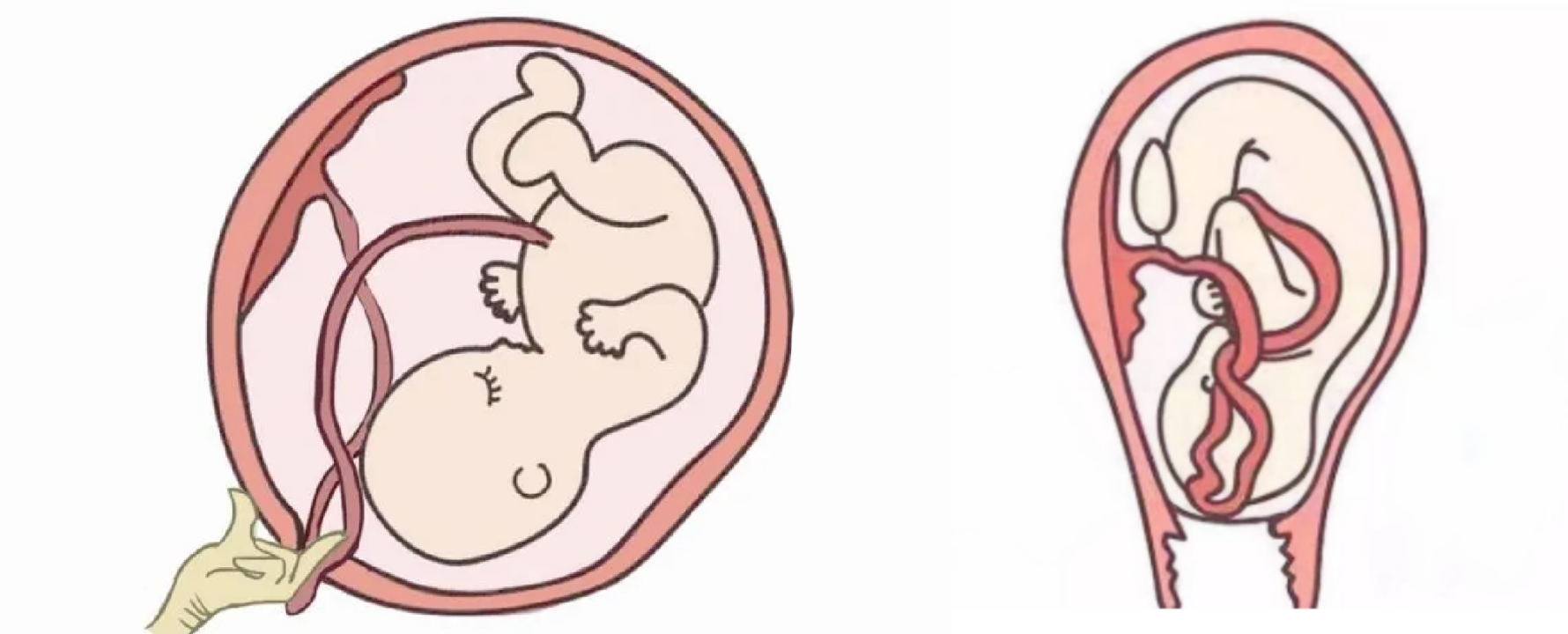 脐带先露属于分娩期的急症和严重并发症,对胎儿危险极大,发生率为0.4%-10%。脐带先露又名隐性脐带脱垂,指胎膜未破时脐带位于胎先露部前方或一侧。脐带是宝宝的生命线,宝宝所需的一切营养和氧气都是通过脐带供给的。脐带跑到胎先露下方,就会被胎先露部位(头、臀、肩等)压住。如果此时还有宫缩,脐带会受到胎先露部位和骨盆的挤压,致脐带血液循环受阻,胎儿缺氧,发生严重宫内窘迫。如血流完全阻断超过7-8分钟,则胎儿迅速窒息死亡。