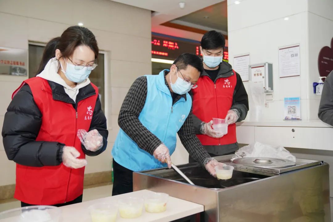 上午8点,医院社会工作部组织医务社工和志愿者在门诊大厅为前来就诊的患者们送上煮好的元宵。志愿者们一边小心地从餐车里盛出热气腾腾的元宵,一边细心地提醒有需要做检查的患者,等做完检查再吃,以免影响检测报告的准确性;并向患有胃肠道疾病、高脂血症、高血压、高血糖的患者宣传,不宜过多进食元宵。