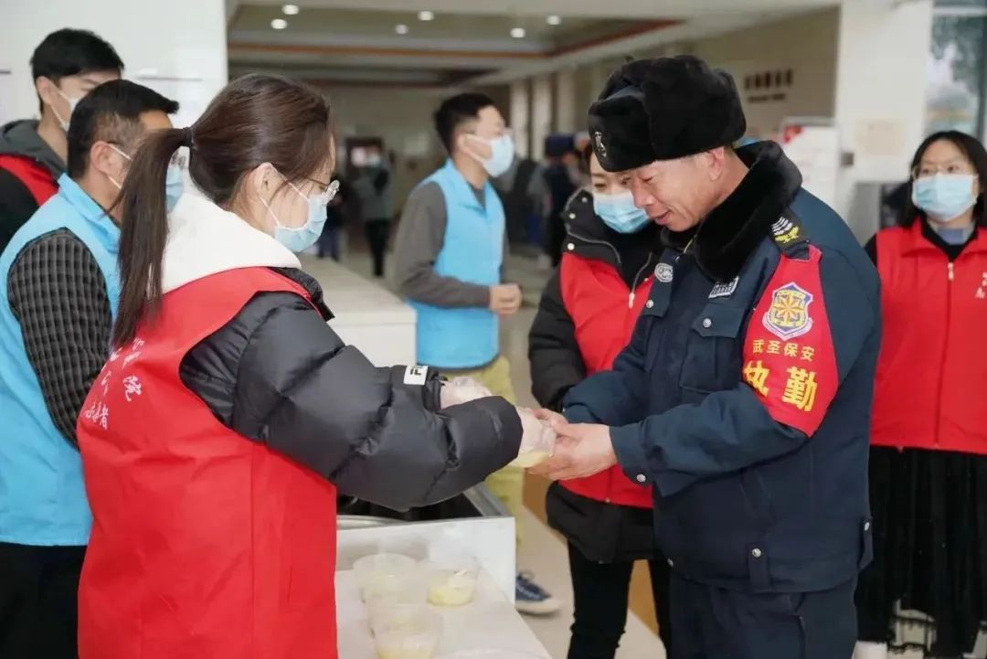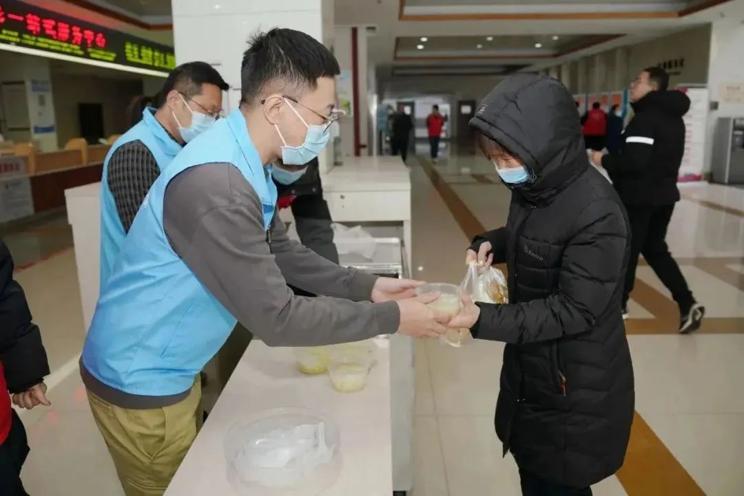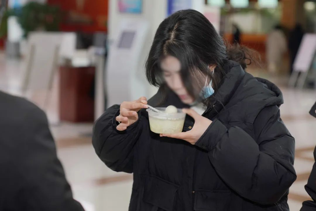 节日期间值守的医护、保洁、保安等工作人员对黑芝麻馅儿的元宵赞不绝口,感谢这份节日礼物为大家驱走严寒。