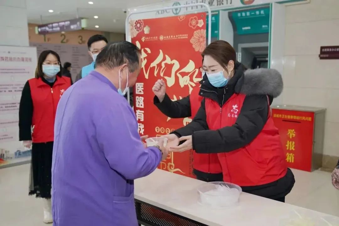 元宵节是中国春节年俗中的最后一个重要节令。为弘扬中华民族传统文化,元宵佳节当天(2月24日),山西省医院协会常务理事单位——运城市中心医院开展“医路有我 志愿先行”元宵节主题活动,组织志愿者用香甜可口的元宵和热情周到的志愿服务,为就诊患者及部分值班人员送去香甜四溢的元宵,送上美好的节日祝福。
