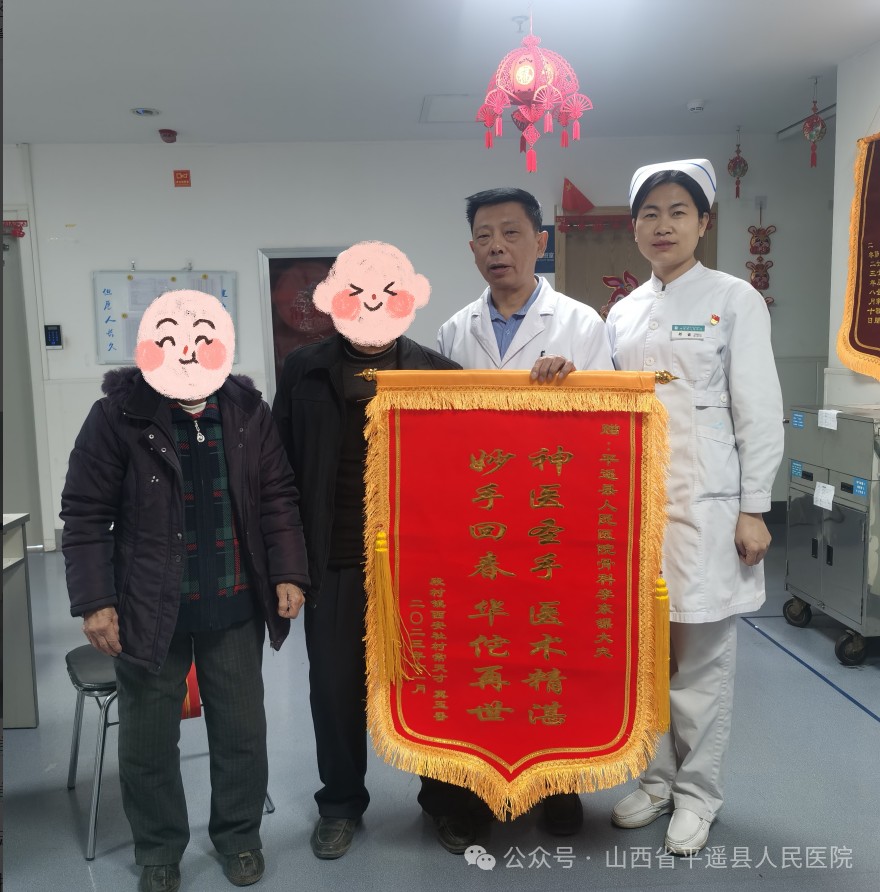 近日,在山西省医院协会理事单位——平遥县人民医院关节脊柱科,冀奶奶手捧一面锦旗走进护士站,送到医生和护士长的手中。这面锦旗背后的故事要追溯到两年前。