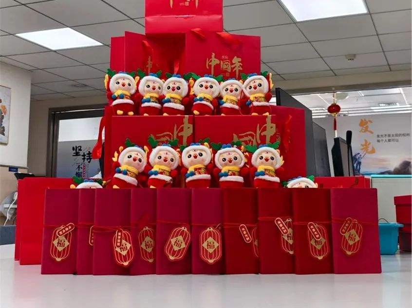 一直以来,淋巴肿瘤科用心打造品质医疗,用情塑造温暖护理。龙年春节前,科室为患者定制了国潮风红色礼盒。红红的礼盒,代表着吉祥、喜庆、幸福和平安。医护人员精心挑选了寓意好、颜值在线的萌仔转转龙挂件和精美红色笔记本,希望患者用笔记本做手帐、记笔记、写日记,记录生活中的点点滴滴。