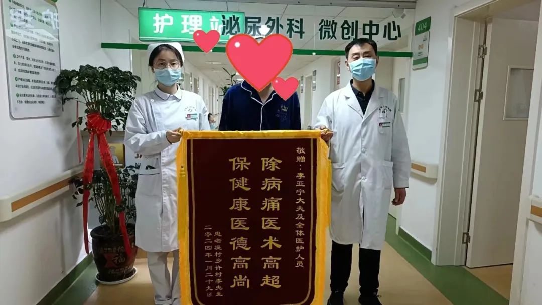 “膀胱结石是泌尿外科的一种常见病,如果在最初出现排尿异常时及时就诊,通过钬激光碎石或者微创膀胱软镜取石,能轻松解决问题。”李亚宁表示,“患者赠送的锦旗是对我们医护工作的认可和肯定,同时也是一种鞭策,我们将更加努力提升综合能力,让服务更贴心、患者更舒心、家属更安心。”