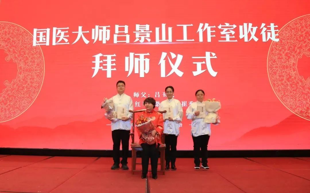 授牌仪式后,举办传统而庄严的中医师承拜师仪式。长治市中医研究所附属医院脑病科柴益庭、申红琴、崔秀芳正式拜吕玉娥为师。