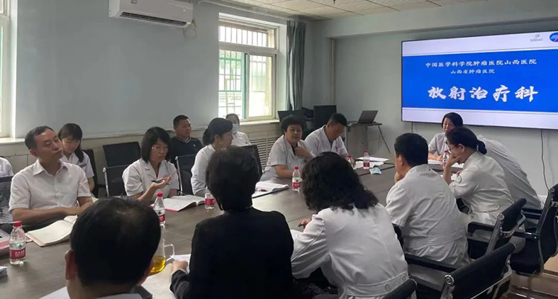 为推动学习贯彻习近平新时代中国特色社会主义思想主题教育扎实开展,进一步了解临床科室工作情况,做到“精准把脉,精准施治”,7月3日,山西省医院协会副会长单位——山西省肿瘤医院副院长于雁玲带领人事科、护理部、医保科、科研科、设备物资科、总务科等相关科室负责人到放射治疗科进行调研。放射治疗科全体中层干部和部分骨干参加调研会。