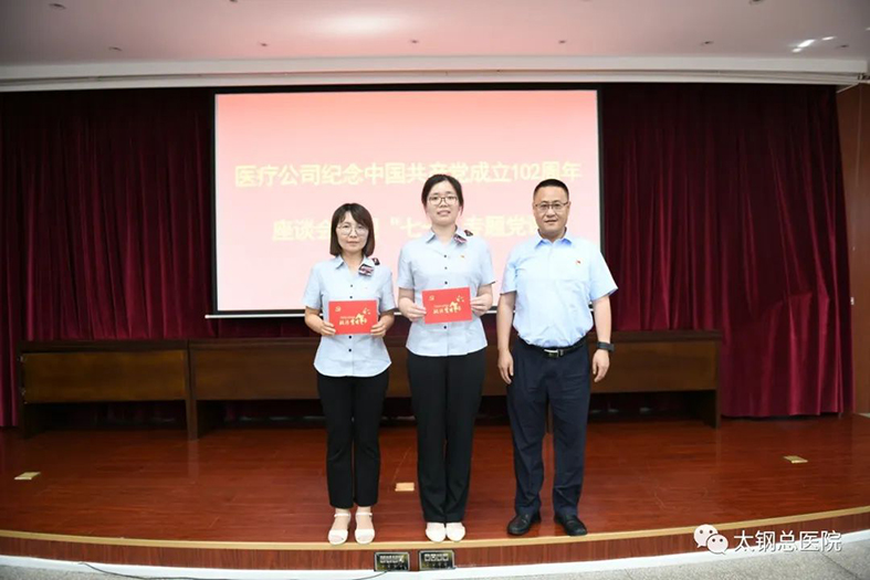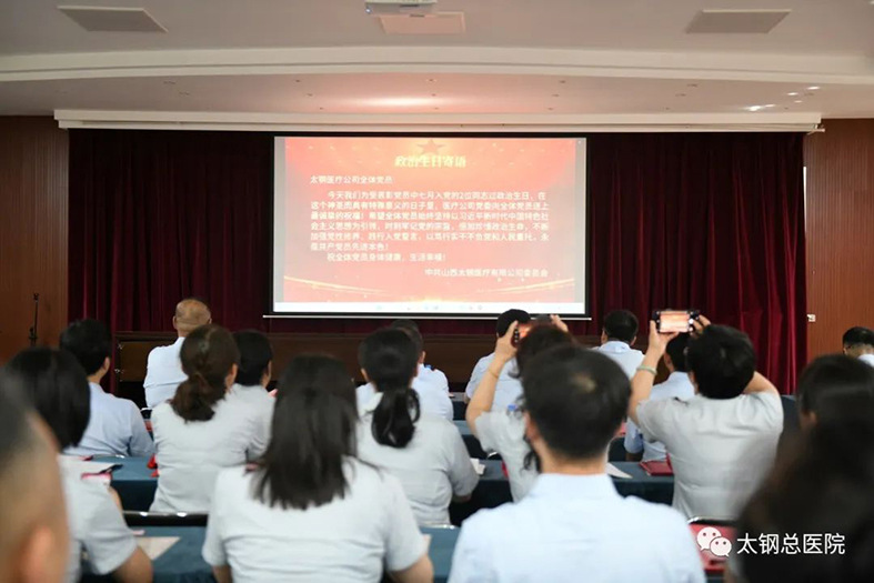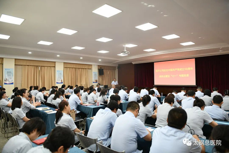 ▲山西太钢医疗有限公司纪念中国共产党成立102周年座谈会暨迎“七一”专题党课现场