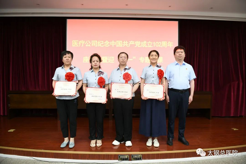日前,山西太钢医疗有限公司(以下简称医疗公司)在山西省医院协会常务理事单位——太原钢铁(集团)有限公司总医院(以下简称太钢总医院)烧伤院区召开纪念中国共产党成立102周年座谈会暨迎“七一”专题党课。
