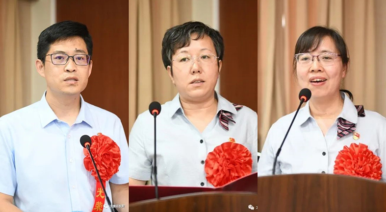 “优秀共产党员”代表、太钢总医院神经内科副主任任国勇,“优秀党务工作者”代表、太钢总医院迎新院区内科党支部书记岳玉瑛,“先进基层党组织”代表、太钢总医院尖草坪院区总支部外科党支部书记段秀卿分别进行交流发言。《一颗初心诉忠诚 一腔热血写担当》《敬业爱党 立足基层 践行宗旨 勇于担当》《强基固本筑堡垒 凝心聚力担使命》,他们从不同的角度,结合自身和党支部工作实际,分享了作为一名共产党员如何发挥先锋模范作用的感知、感悟。