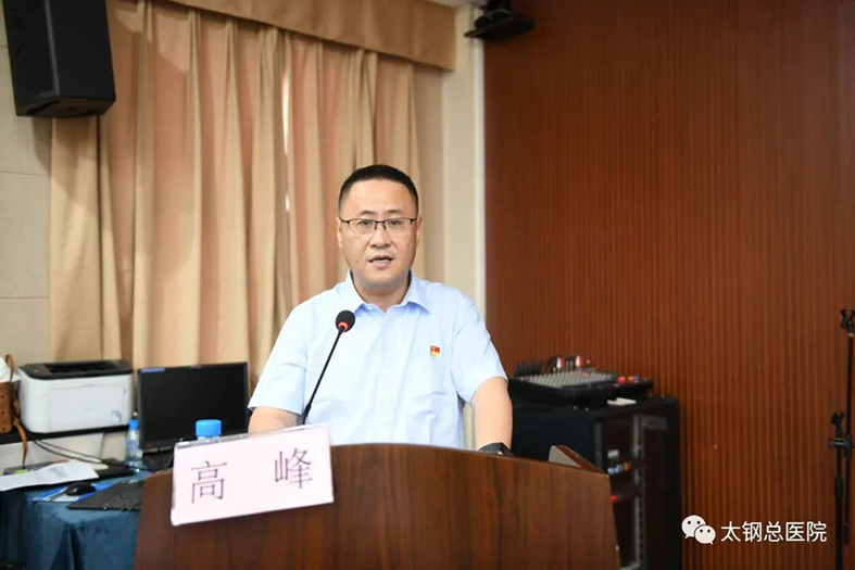 医疗公司党委书记、总经理、太钢总医院院长高峰同志以《学思践悟二十大 凝心聚力新征程》为题讲授专题党课。他以“党的二十大报告解读”为主线,进行深入浅出的讲解,并就报告中关键词的深刻内涵进行了重点阐述。对党的二十大报告提出的“把保障人民健康放在优先发展的战略位置”“高质量发展是全面建设社会主义现代化国家的首要任务”,结合实际,就如何贯彻落实好党的二十大精神,助力医疗公司高质量发展讲感悟、谈思路、举措施。他强调,各级党组织要坚持以习近平新时代中国特色社会主义思想为指导,全面贯彻党的二十大精神,充分发挥支部战斗堡垒作用和党员的先锋模范作用,引领各科室和广大职工加强学科建设和人才队伍建设,积极开展新技术、新项目,全力提升医疗质量和服务水平,举全院职工之力,勠力同心,锐意进取,在医院高质量发展新征程上展现新气象、创出新业绩。
