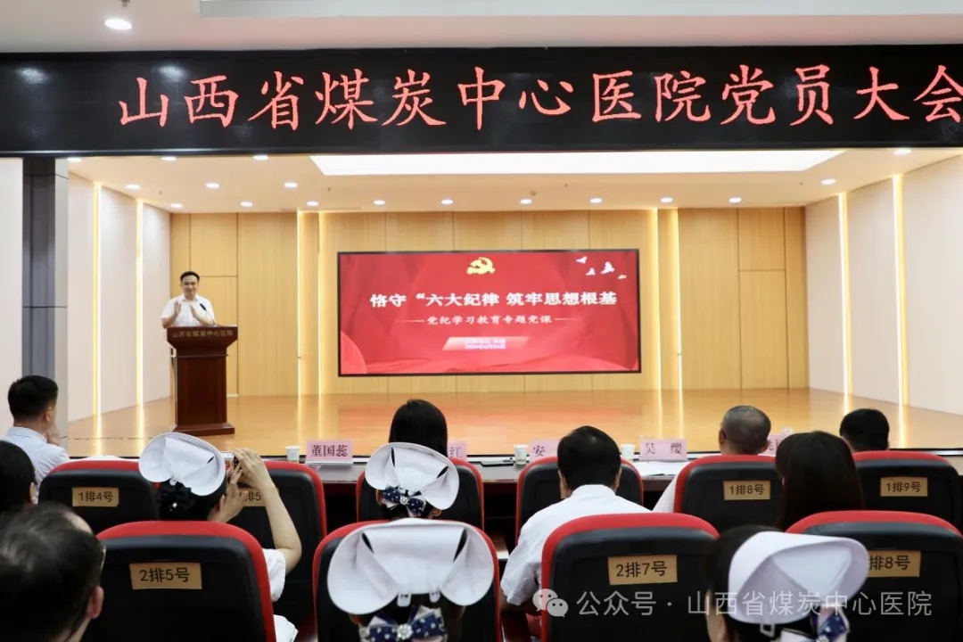 为深入学习贯彻习近平总书记关于党纪学习教育的重要讲话和重要指示精神,持续推进党纪学习教育走深走实,山西省医院协会理事单位——山西省煤炭中心医院党委书记安健于日前以《恪守六大纪律 筑牢思想根基》为题讲授党纪学习教育专题党课。医院领导班子成员、全体党员同志、离退休党员代表等280余人参加学习。