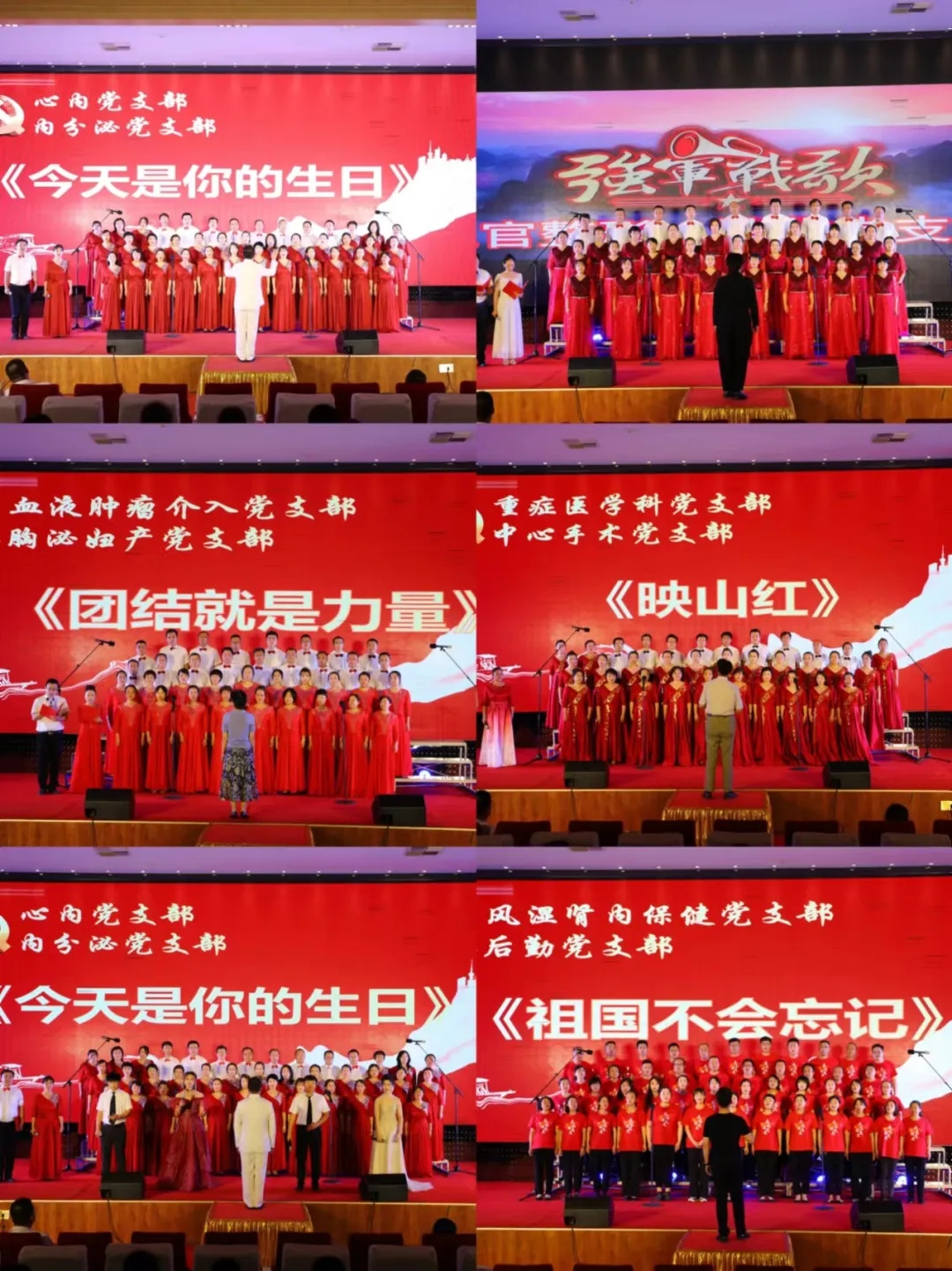 表彰会后,开展了大型红歌合唱活动。大家着装统一,精神饱满,用响亮的歌声表达了对党的真挚感情和美好祝福,唱出了全体党员对祖国的拳拳赤子之心,唱出了五院人昂扬向上、奋发图强的医者风貌。