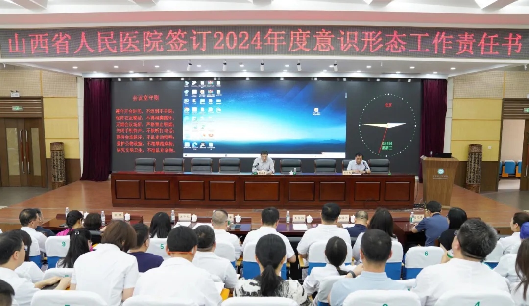 会上,张瑞平与班子成员代表、党(总)支部书记代表分别签订《山西省人民医院2024年度意识形态工作责任书》。