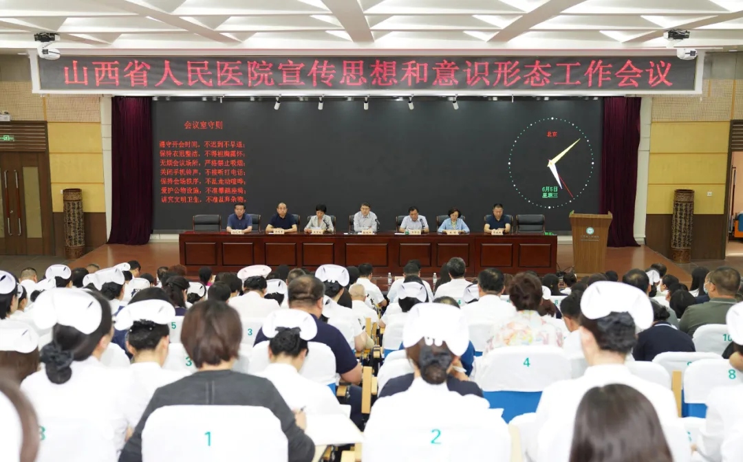 6月5日,山西省医院协会副会长单位——山西省人民医院召开宣传思想和意识形态工作会议,要求党员干部要进一步提高政治站位,夯实思想基础,统一工作目标,压实意识形态工作责任,形成齐抓共管格局和良性工作机制,推进医院宣传思想和意识形态工作高质量发展。医院党委书记张瑞平出席会议并讲话。医院领导班子成员、党支部书记、中层干部参加会议。医院党委副书记汪华彪主持。