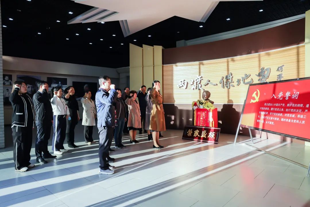 在何泽慧院士纪念馆,党员们面对党旗,重温入党誓词。在讲解员的带领下,依次参观了纪念馆的序厅、慧泽厅、先泽厅、同泽厅。讲解员认真讲解何泽慧的生平事迹、成就及对后世的影响等内容,生动再现何泽慧卓越的禀赋、精湛的学术、刻苦钻研的精神。