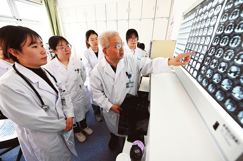 4月10日,山西省医院协会副会长单位——山西省人民医院呼吸与危重症医学科主任医师魏东光正在指导年轻医师分析病例。作为我省呼吸与危重症医学领域的专家,魏东光在呼吸系统疾病的诊断和治疗领域拥有广泛的专业知识和丰富的经验,他多次参与国内外学术交流,将先进的治疗方法和技术应用于临床实践,在平凡岗位上做百姓健康的“忠诚卫士”。(李兆民摄)