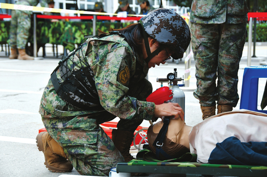 近日,山西省医院协会常务理事单位——第985医院组织以“踔厉奋发砺精兵,精武强能争先锋”为主题的群众性岗位练兵比武活动,参赛人员围绕胸腔闭式引流术、清创缝合术、气管插管、颠簸状态下暗光静脉输液、心肺复苏、ALS型便携式呼吸机操作6个课目进行激烈角逐。图为医疗专业组1号选手正在进行气管插管技术操作。(要佳 钟茂林摄)