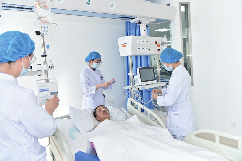 ▲为朔州市大医院重症监护室医护人员在护理病人。