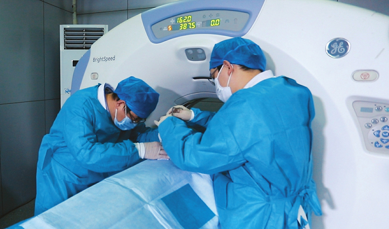 近日,山西省医院协会理事单位——山西省中医院介入血管科在CT引导下为一例肺癌患者行放射性粒子植入治疗,这种治疗方法具有微创、疗效高、副作用小的特点,适用于全身各部位的实体性恶性肿瘤治疗,如肺癌、肝癌、胰腺癌等。尤其为一些恶性肿瘤在局部、其他治疗方式疗效不佳或高龄体质弱患者,提供了一种高效治疗方式。目前,消融治疗和放射性粒子植入等肿瘤介入微创治疗方式已成为实体性恶性肿瘤的重要治疗方法。(周慧芳)