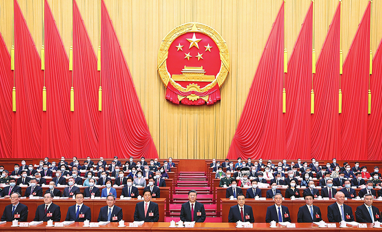 ▲3月5日,第十四届全国人民代表大会第一次会议在北京人民大会堂开幕。党和国家领导人习近平、李克强、栗战书、汪洋、李强、王沪宁、韩正、蔡奇、丁薛祥、李希、王岐山等出席会议。新华社记者鞠鹏摄