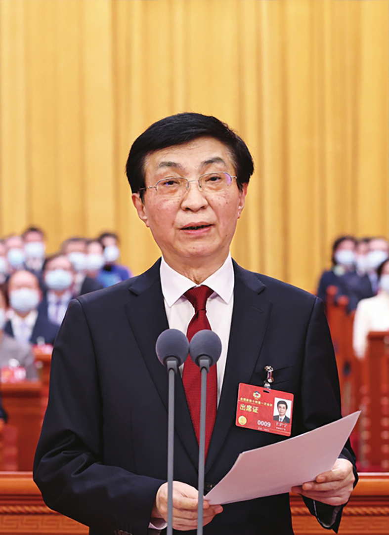▲十三届全国政协主席汪洋代表政协第十三届全国委员会常务委员会向大会报告工作。新华社记者丁海涛摄
