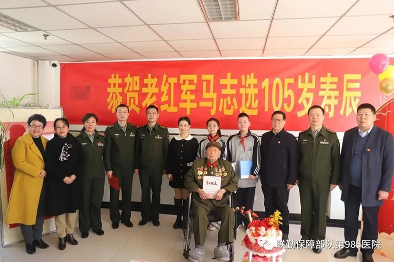 “祝你生日快乐!祝你生日快乐!……”2月20日,在山西省医院协会理事单位——联勤保障部队第985医院住院治疗的山西省军区第五干休所离休老首长马志选同志迎来105周岁生日,医院专门举办“生日会”。医院党委领导、科室代表、干休所代表及老人家属一同参加庆祝活动。