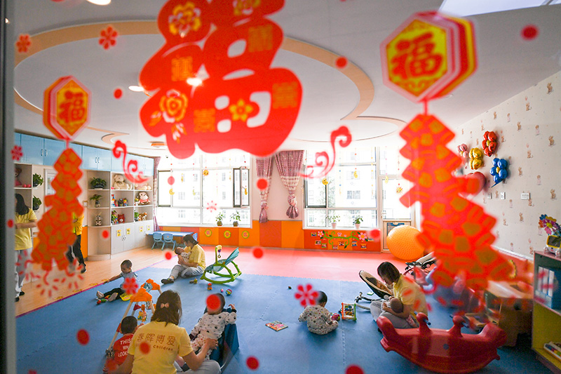b(0, 0, 255); font-family: 宋体;">在呼和浩特市儿童福利院,教职工在陪伴儿童们玩耍(2019年5月28日摄)。