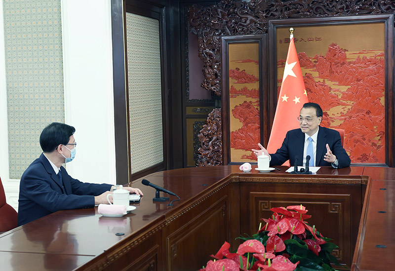 李克强会见李家超 颁发任命李家超为香港特别行政区