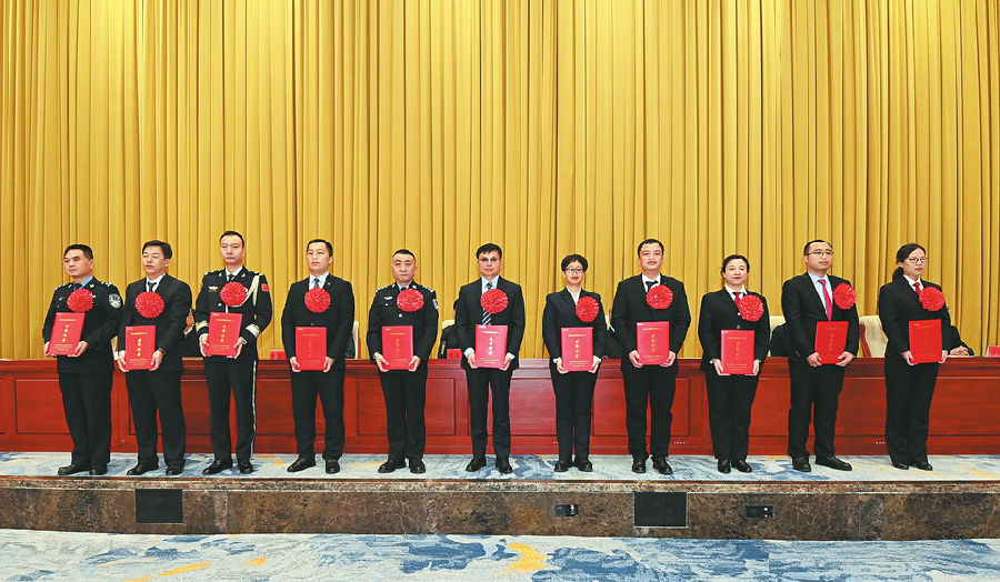 1月24日,平安山西建设表彰大会上,受到表彰的“平安山西建设先进个人”代表上台领奖。