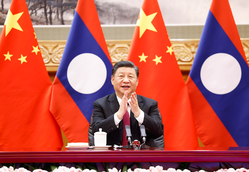 中共中央总书记、国家主席习近平12月3日下午在北京同老挝人民革命党中央总书记、国家主席通伦通过视频连线共同出席中老铁路通车仪式。