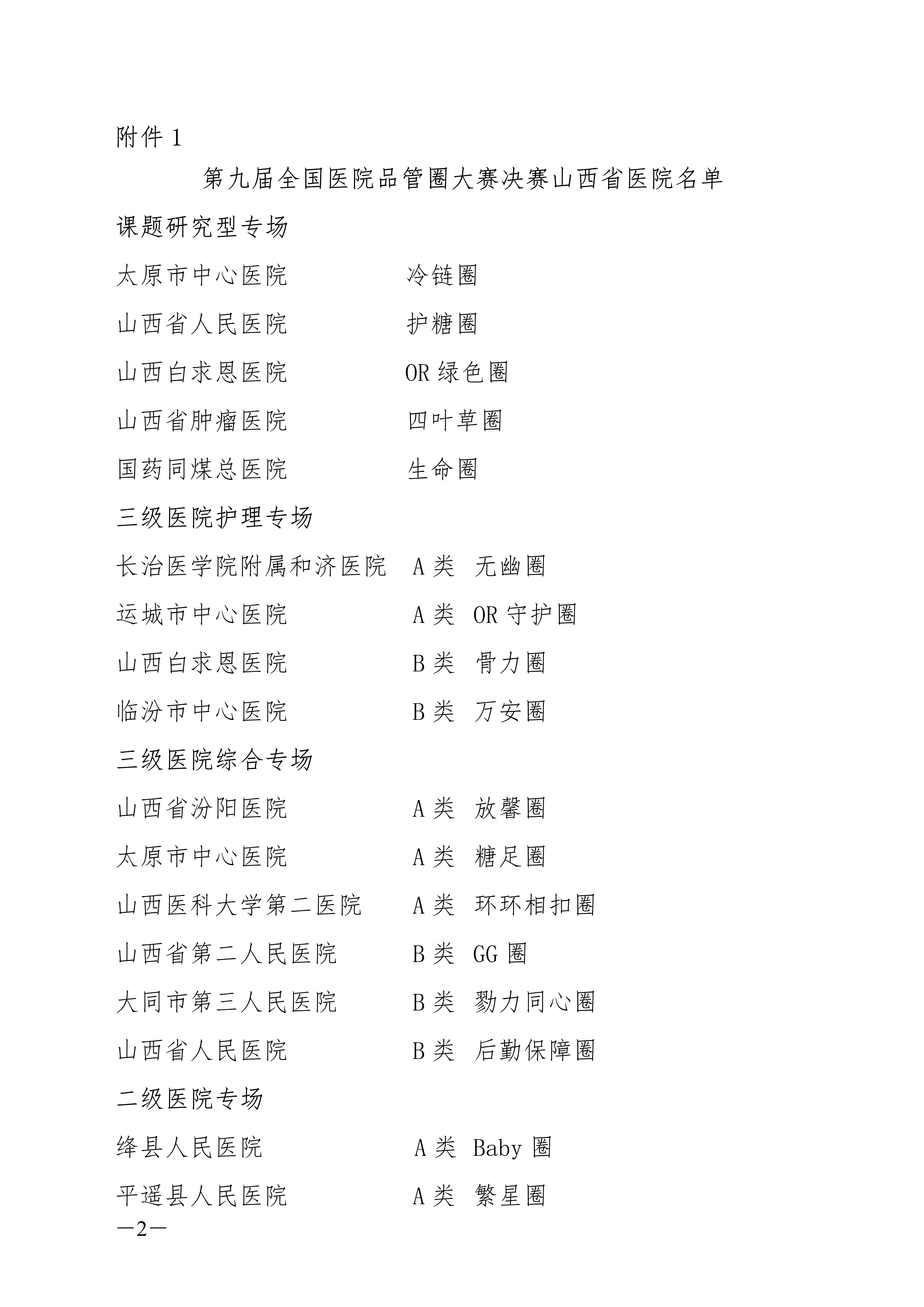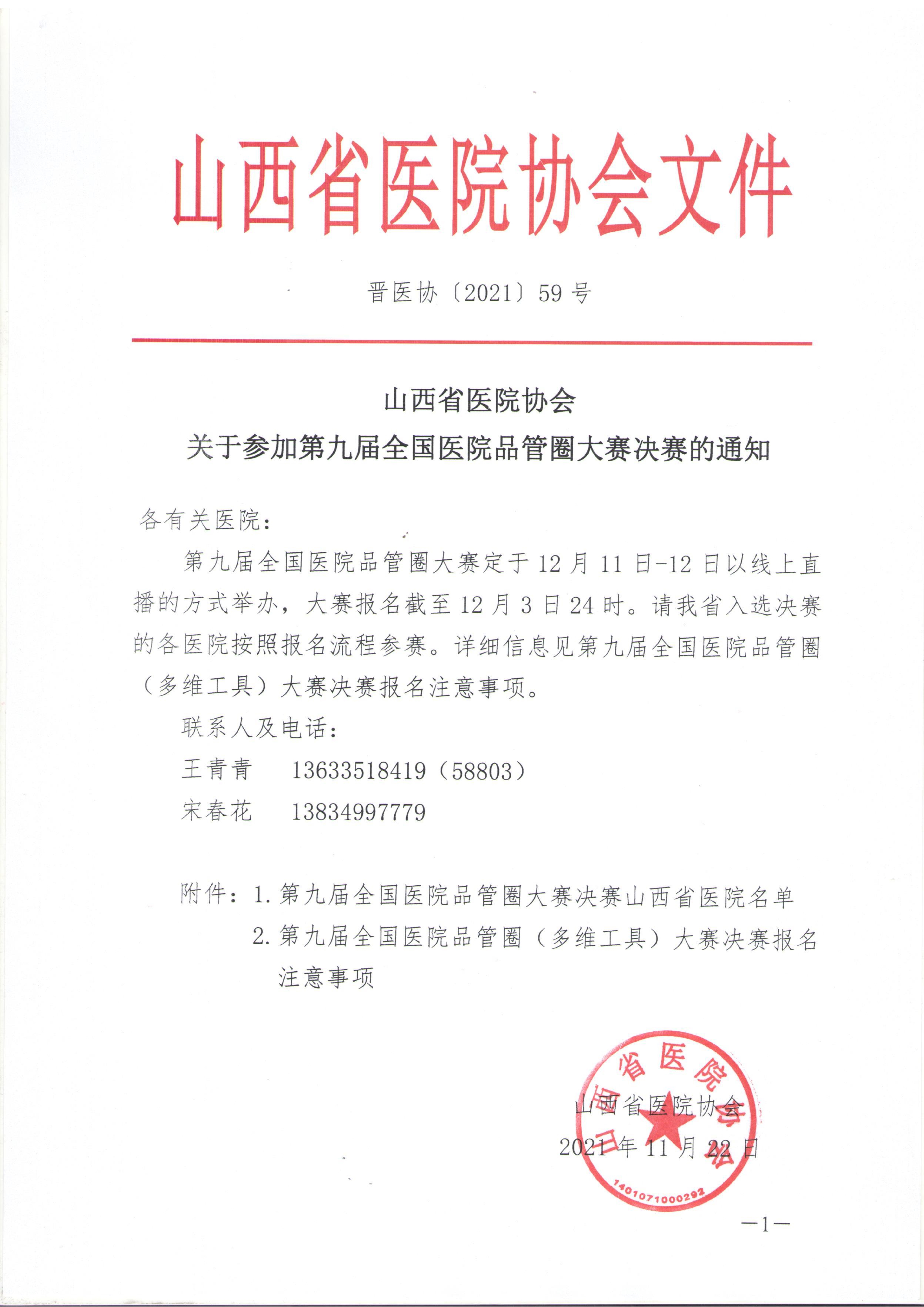 山西省医院协会关于参加第九届全国医院品管圈大赛决赛的通知