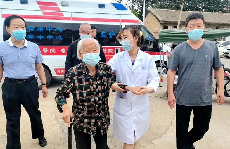 2021年8月26日,王玉秀需要接种第二剂新冠疫苗了。这天恰巧是老人在绛县健康医院做骨折手术整整8个月的日子。一大早,王全民就带着医护人员对老人进行回访,并安排正在郝庄乡卫生院支援接种新冠疫苗的一位医生和救护车,接老人到卫生院接种疫苗,为老人顺利接种了第二剂次新冠疫苗。