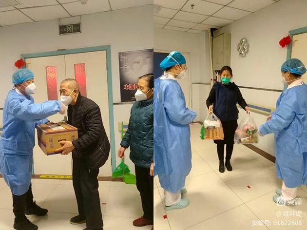 医护人员把水果送到患者和家属手中,让大家一起感受这份温暖,一个团结有爱有温度的集体。
