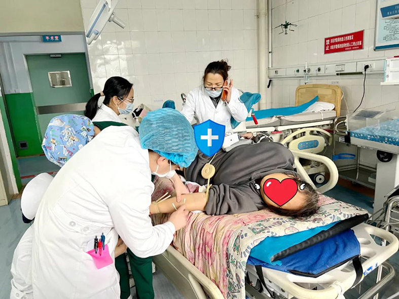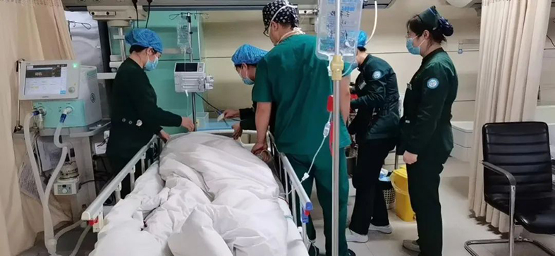 当日中午12时50分,该院120急救中心接到急救电话:“孕妇怀孕8个多月,**大量出血……”急诊科话务员接到电话立即联系救护车,妇产科副班医生杨国霞、助产士刘蕊乘车火速赶往患者家中。只见患者面色苍白,血液浸透衣服被褥。前往医院途中,患者几乎测不出血压,脉搏微弱,并逐渐处于嗜睡状态,且已无胎心。凭借多年丰富的临床经验,杨国霞高度怀疑孕妇重度胎盘早剥,在监测孕妇生命体征的同时,立即电话通知病区值班医护人员加快做好抢救准备。